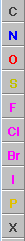 The atomic symbols represented on the programme are the most frequent. X is a catch-all category. It initially represents a hydrogen, but if you wish to change it by any other symbol, you can specify so in its dialog box.
